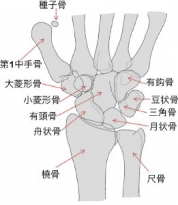 手根骨とは、前腕の骨と手指の骨の間にある8個の骨です。