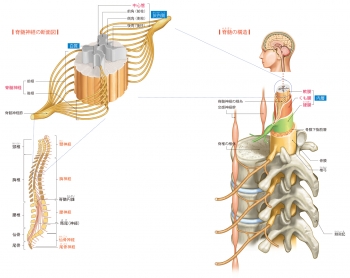 ただし、第一頸髄と尾髄では、背側神経根はなく運動神経根だけが出る。