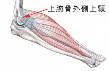 外側上顆炎とは、肘もしくは手関節をよく使うために、前腕伸筋群の付着部である外側上顆に炎症、痛みが起こる疾患です。