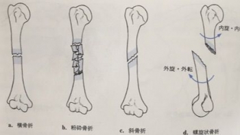 投球や腕相撲などによる筋力作用による捻転骨折も発生する。螺旋状骨折や斜骨折になりやすい。