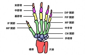 ※母指の基節骨と末節骨の間の関節は、IP関節と呼びます。