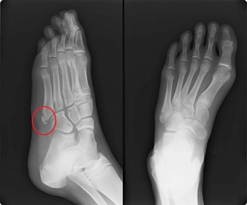 スポーツに基づく反復外力により、第2・3中足骨骨幹部に疲労骨折を起こすこともあります。