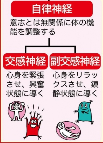 自律神経は「交感神経」と「副交感神経」の2種類から成ります。