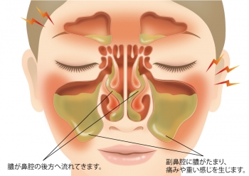 そして腫脹が起き、副鼻腔に膿が溜まります。